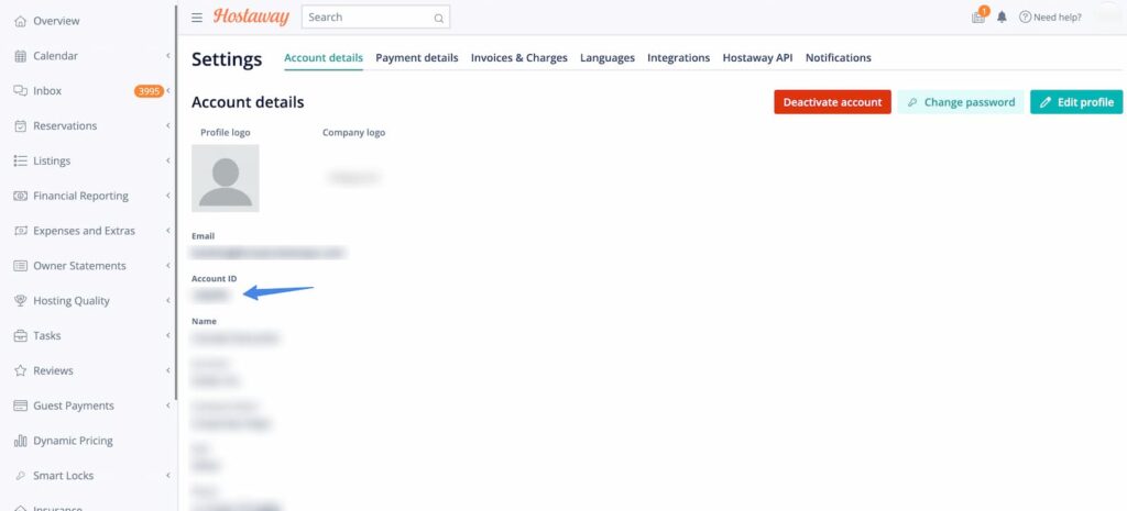 - Navigate to Settings > Account details. You can go directly there using this link: https://dashboard.hostaway.com/settings/account-details