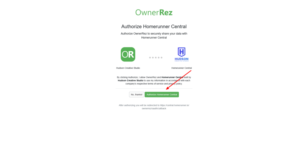 You will be redirected to OwnerRez site for Authorization. Login to your OwnerRez account and connect Hudson Creative Studio to your access.