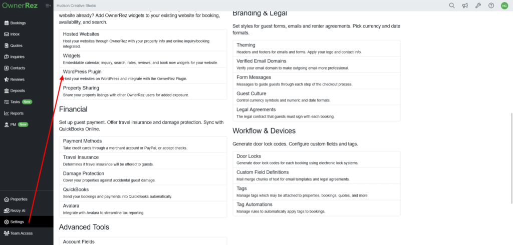 Go to OwnerRez > Setting > WordPress Plugin settings and enable WordPress Plugin + Integrated Websites feature.