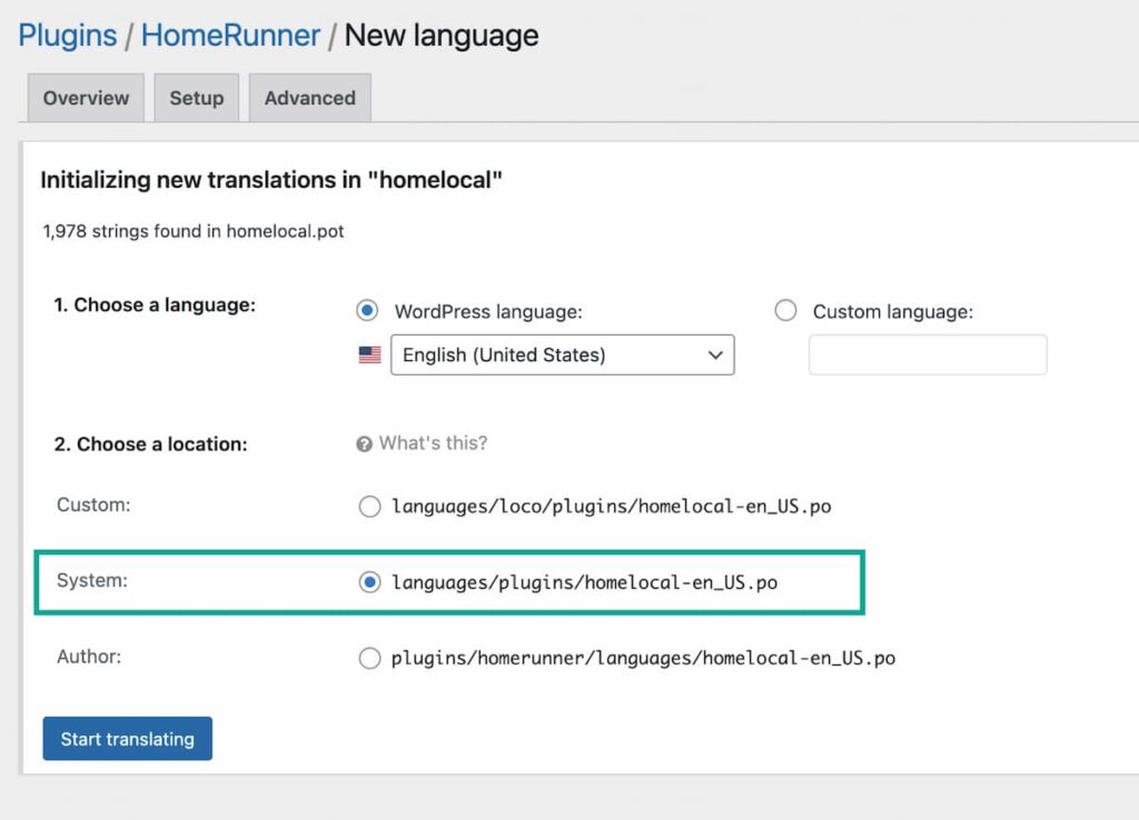 Important: Always choose the System location option. Do not store files within the plugin folder or the Loco folder. Storing them in “System” ensures your custom text is future-proof and will not be overwritten when the plugin is updated.