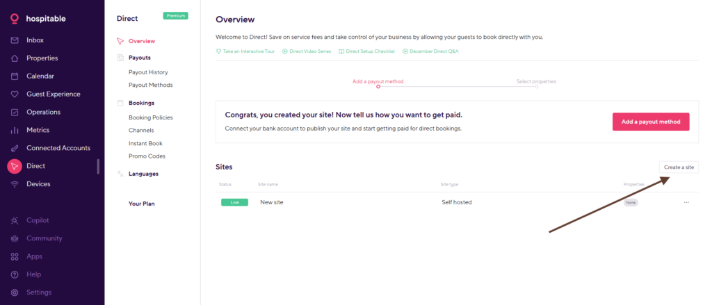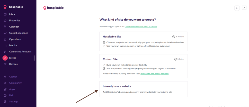 - Navigate to: https://my.hospitable.com/direct