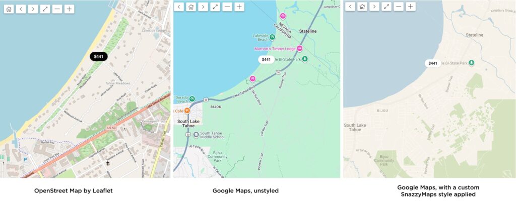 Without custom styling, Google Maps uses its standard bright, high-contrast appearance. With styling, you can create something that feels more integrated with your site design.