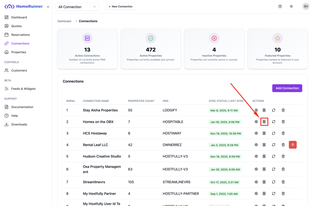 Navigate to the connection listing and click on the icon showed below associated with your specific connection.