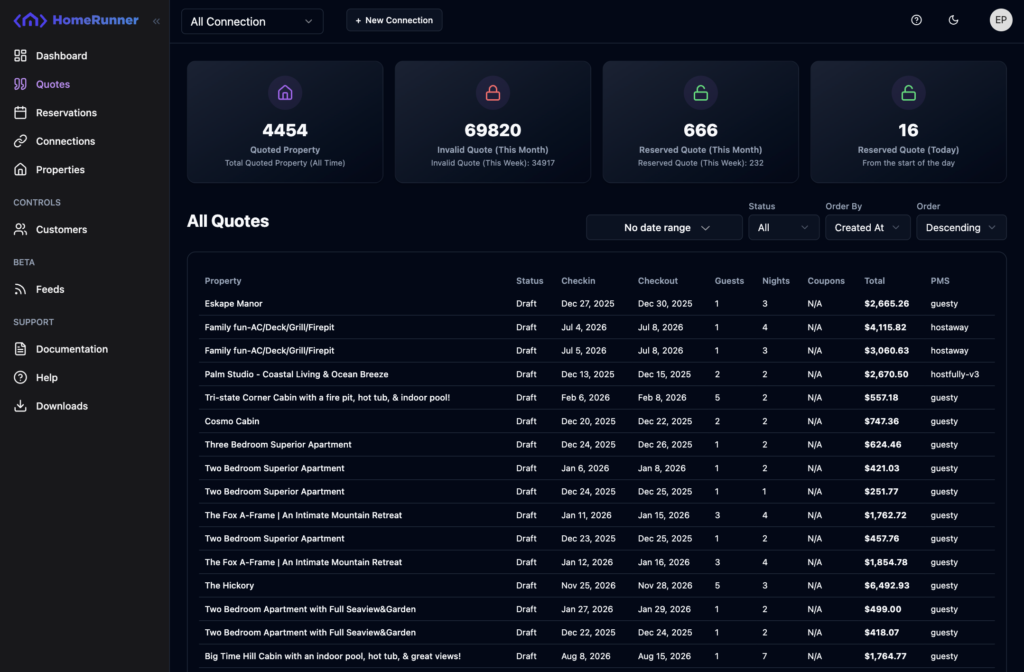 You can filter those quotes out using global connection selection from the top navigation bar and also from the date range and status filter. You can also sort those results too.