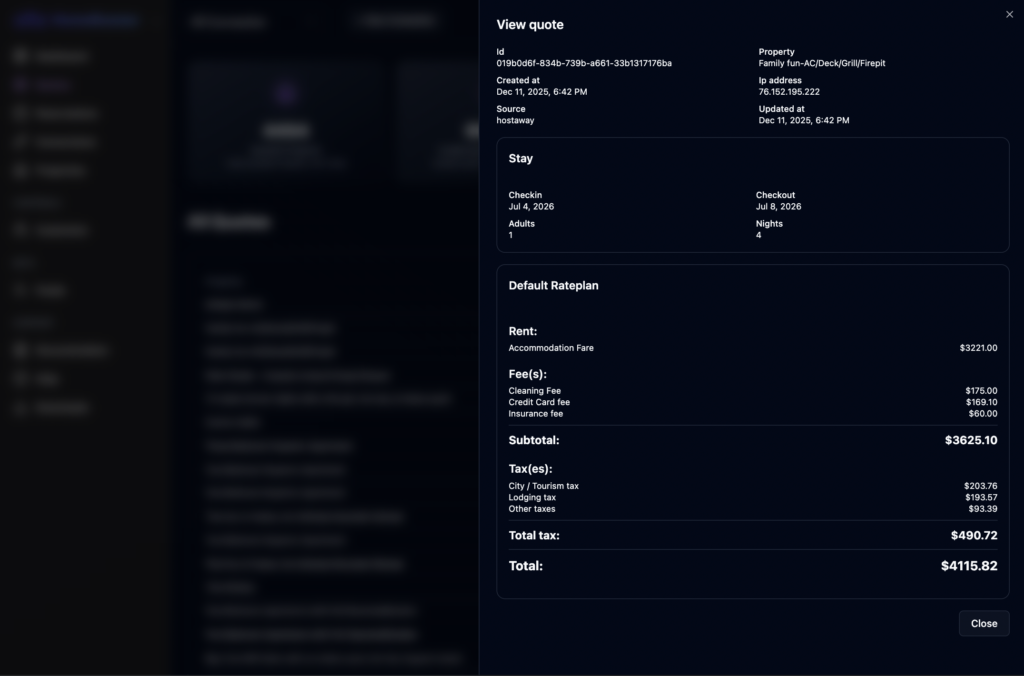 To see all the quotes, navigate to the Quotes link from the sidebar. You’ll see a quotes list view with some quick details in the column.